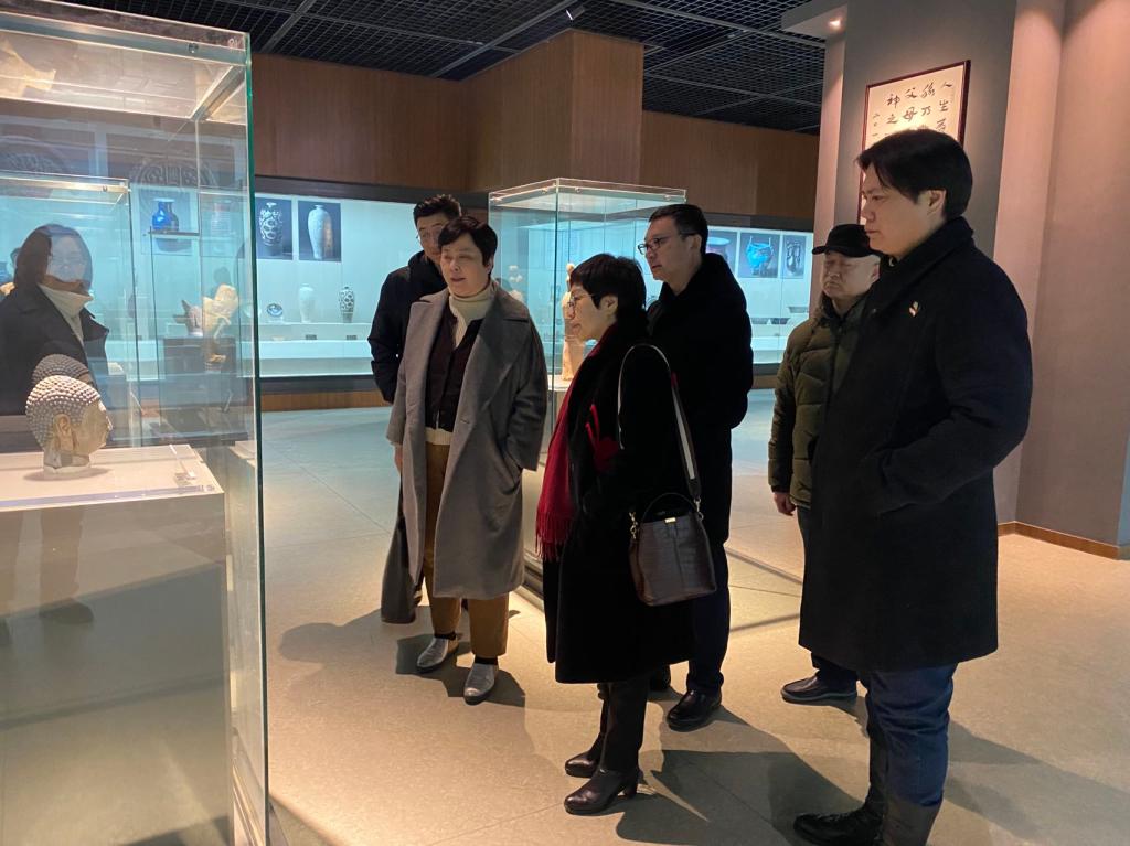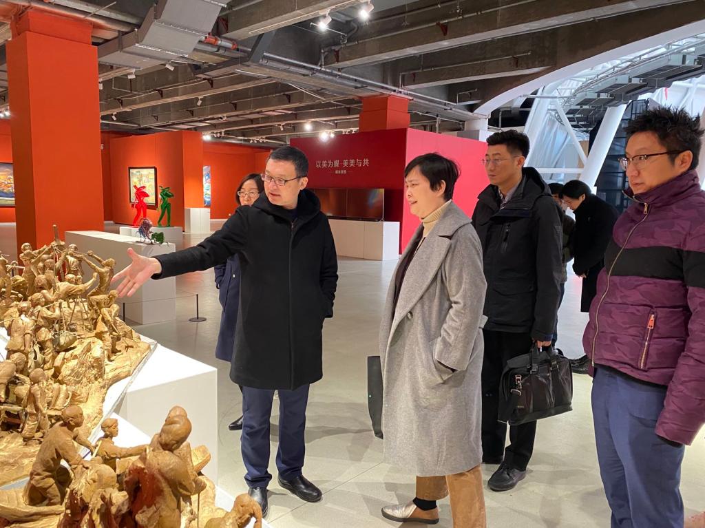会见前,钟蓝一行参观了在美术馆举办的“大美颂赞 百年辉煌”庆祝建党百年主题创作展、孙长林艺术收藏馆、国家产教融合项目“文化创意产业与工艺美术服务业实训基地”等。