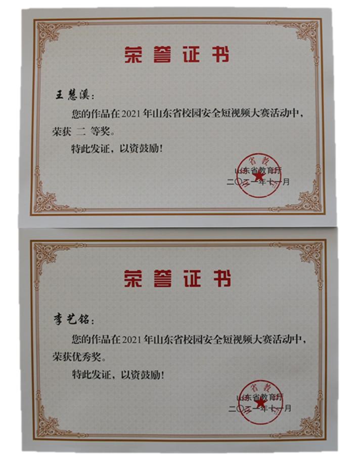 近日,由山东省教育厅等7部门联合组织开展的“同心防溺水”安全宣传教育作品征集和校园安全短视频大赛评选结果揭晓,永利官网师生喜获佳绩,分别荣获一等奖2个,二等奖11个,三等奖12个,优秀奖1个,1人获“优秀指导老师”荣誉称号。