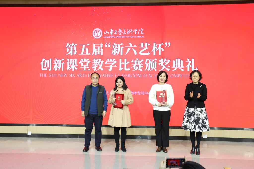 颁奖典礼随后举行,综合教学规范性文件、课堂教学视频评审和现场说课三个环节的成绩,最终数字艺术与传媒学院李娜、冯秀彬、邢艳群教学团队获得一等奖;人文艺术学院姚丹、魏毅东、高波教学团队,工业设计学院张炎、王君秋教学团队获得二等奖;服装学院沈汀、王昉、郑云歌团队,服装学院李杰、顾振美、刘瀛波教学团队,现代手工艺术学院毛正、林晓杰、张红梅教学团队获得三等奖。