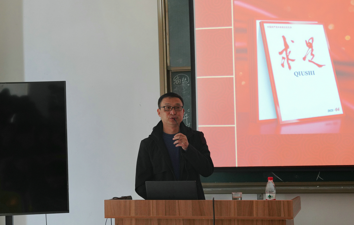 在两小时的授课中,韩文涛从习近平总书记在2021年《求是》第10期题为《用好红色资源,传承好红色基因把红色江山世世代代传下去》的文章切入,为同学们从“红色地标:人间正道是沧桑”“战略决策:艰难困苦向辉煌”“英雄烈士:为有牺牲多壮志”等七个方面,展开讲述了我党百年中艰难曲折、历尽沧桑、不屈不挠的道路求索历程,并通过“红色地标、精神谱系、英雄烈士”等革命文化和革命事迹深入讲述在中国共产党的带领下,经历伟大探索、重大决策奠定的“历久弥新的必由路”,通过中国经济发展和取得的瞩目成就讲述中国国际地位的变化。