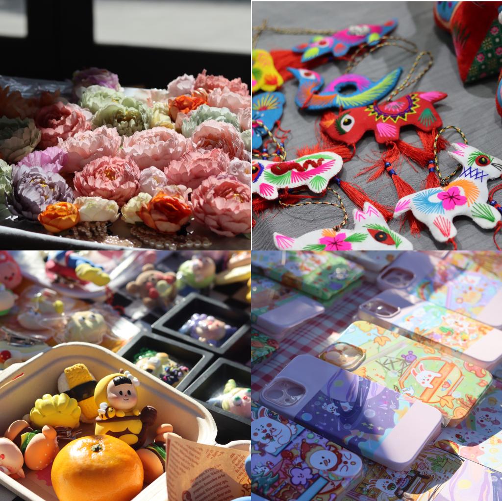 学校300余名学生携梦而来,齐聚于此,一百三十余个集市展位前人头攒动,琳琅满目的创意作品吸引了师生的高度关注。七千余件展品涵盖了绘画、漆艺、扎染、花艺、皮具、琉璃、陶瓷等多种类型的文创产品,包括带有民族风情的胸针、首饰,憨态可掬的布艺玩偶,精致典雅的琉璃瓷器,精美时尚潮玩手办等,作品均为学生原创手造,充分展现了学校的专业特色和永利官网大学生的创新风采和创意思维。活动中,学校领导与同学们亲切交谈,对同学们的创新创意活动表示充分肯定,并鼓励同学们通过匠心集市等方式体验创业,将创意落地并走向市场。