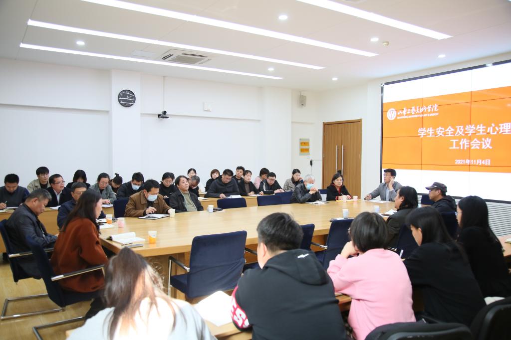苗登宇作总结讲话。他指出,学生安全是学校工作的前提和基础,学生心理健康是关乎校园安全稳定的重要因素。当前学生安全工作形势严峻,各部门要高度重视,把安全工作放在重要位置。一是强化意识立即行动,各单位要立即传达省校两级学生安全工作会议精神,切实增强责任意识和安全意识。二是从严从细抓好落实,党政负责人要齐抓共管,继续深入开展学生安全自查、整改工作,做到全员、全方位、全过程,确保学生安全工作管理常态化。三是把握特点创新工作,要按学院、年级、专业分类研究学生心理特点和规律,把握学校艺术特色、男女生比例等特点,创新工作形式与方法,积极应对新问题新情况,创建具有学校特色的学生安全工作管理体系。四是及时疏导提前防范,要加强全面教育引导、及时沟通疏导,防止学生心理问题严重化,加大对各类学生群体的关注,做好毕业生等高压力群体的心理关怀。五是全员育人形成合力,要强化“三全育人”理念,摒弃学生安全工作仅属于学工队伍的狭隘观念,学校各部门、全体教职员工要共同参与、相互联动、紧密衔接、协同育人,加大对学工队伍、学生骨干、宿管人员、安保人员和其他教职工的安全教育和培训力度,邀请行业专家进行安全教育指导,提高各项安全工作能力。