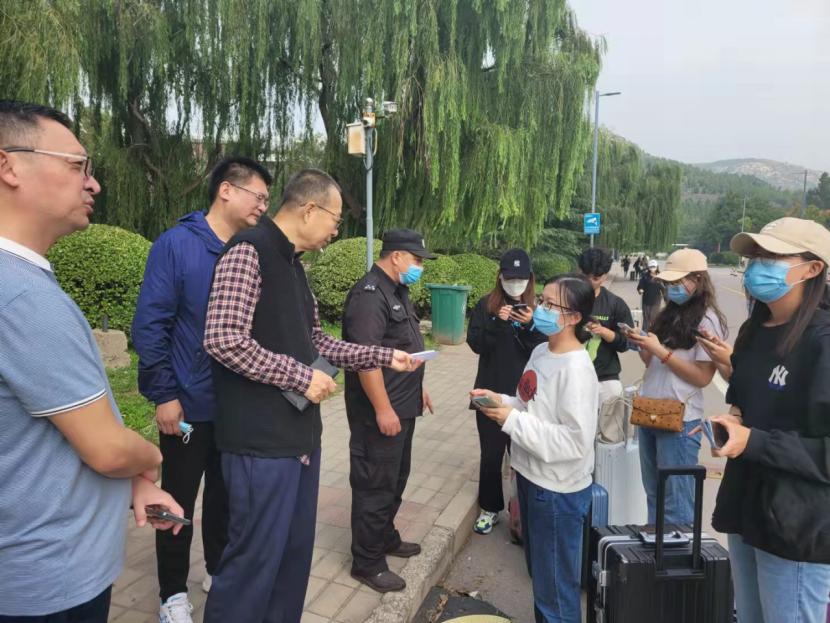 潘鲁生首先来到学校西南门出入口,详细了解十一假期学生离校返程情况,叮嘱同学们要注意交通安全,牢记疫情防控各项措施。潘鲁生指出,有关职能部门和各二级学院要抓紧抓实抓细学校疫情防控和节后学生返校工作,要科学精准做好师生管理,完善师生健康台账,全面摸清师生员工及家庭共同生活成员十一假期出行、接触人群等情况,确保师生假期出行和返程安全。