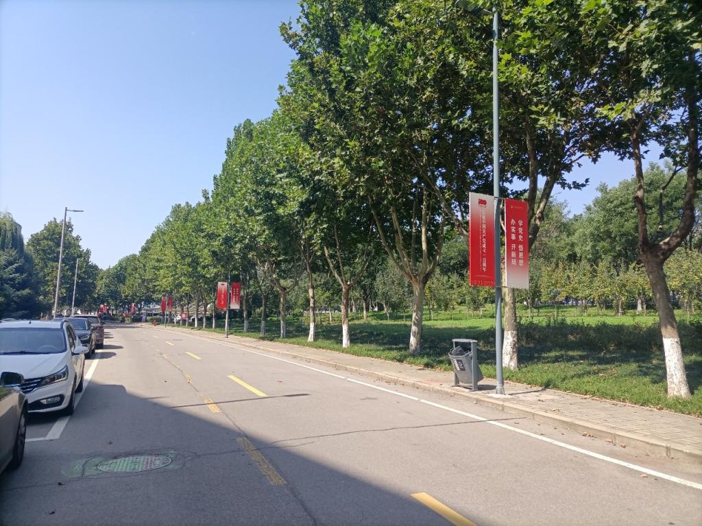 按照“隆重热烈、注重实效、安全节俭、整洁优美”的原则,学校通过升国旗、挂横幅、贴主题画、制作宣传展板、树大型宣传牌和道旗等方式,积极做好校园氛围营造工作。