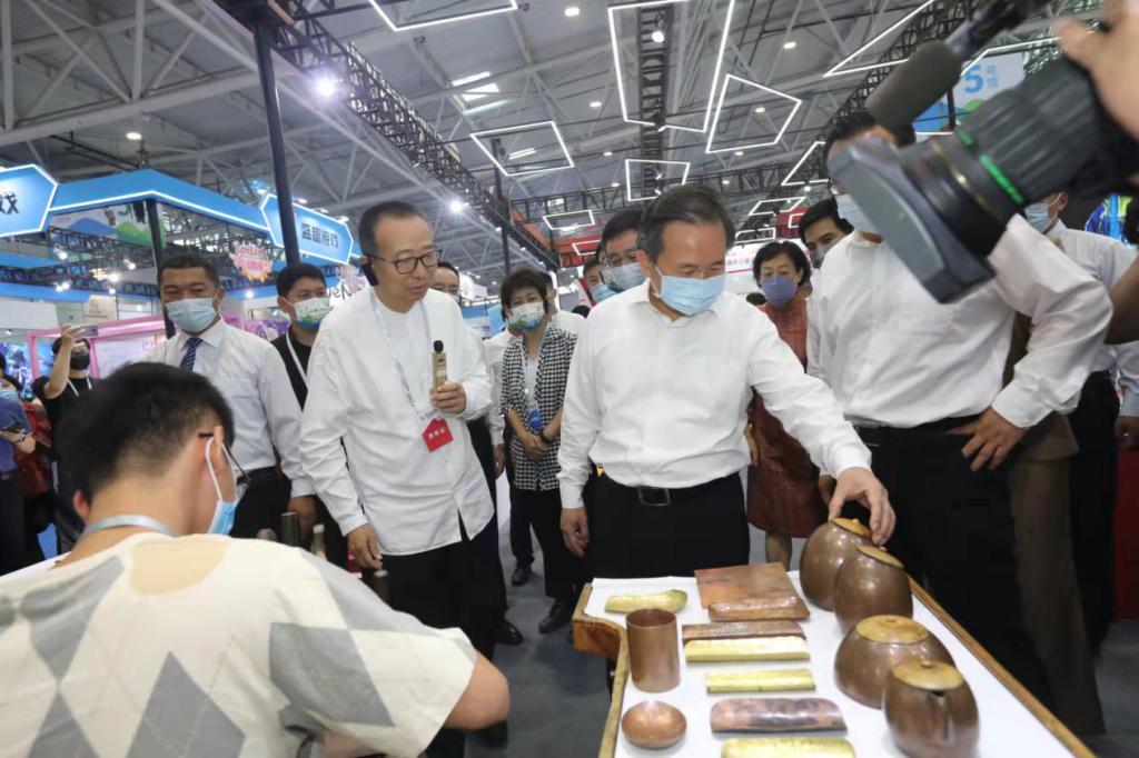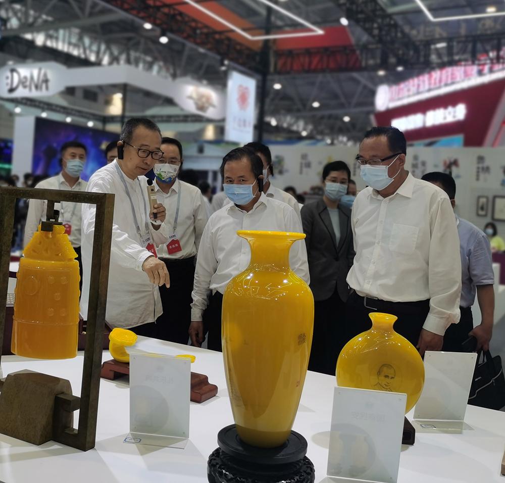 9月18日上午,省委副书记、省长李干杰,省委常委、宣传部部长白玉刚,济南市委副书记、市长到山东国际会展中心参观第二届中国国际文化旅游博览会并到永利官网“手造集市”展区检查指导工作,院长潘鲁生、副院长李新陪同参观。