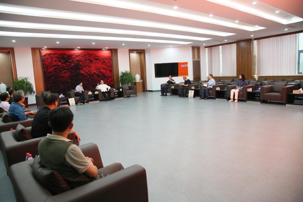 9月18日,巨野县文旅局党组书记、局长朱衍芳一行来校交流访问,院长潘鲁生接待来宾并讲话。双方相关部门负责人、巨野县书画院主创画家出席会议。