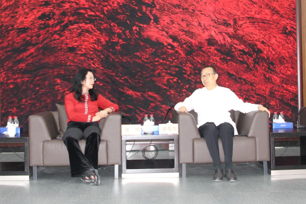 9月16日,依文集团董事长夏华、董事长助理杜丽云,山东省委宣传部国有文化企业处副处长朱志强来校调研并洽谈合作。院长潘鲁生、副院长董占军陪同调研,并与来宾进行座谈交流。