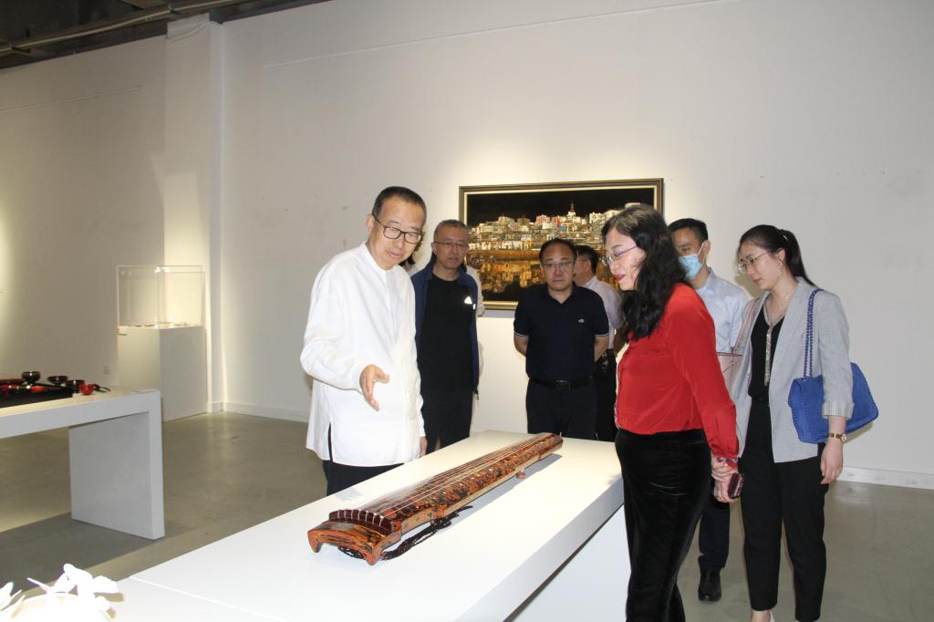 潘鲁生对夏华一行来校调研表示欢迎,陪同来宾现场调研了中国民艺馆、刺绣馆、手工艺实验中心,参观了“大美颂赞 百年辉煌”庆祝建党百年主题创作作品和师生优秀文创作品。调研过程中,潘鲁生介绍了学校的办学理念及传统民间艺术品收藏研究、实验室建设利用等情况。