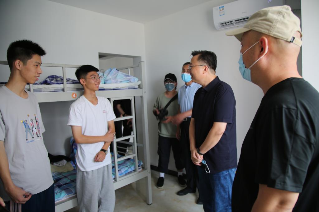 何思清一行还深入到宿舍看望到校新生,进行了亲切交流,询问新生来自哪里、所学专业和对学校的感受,鼓励他们珍惜时光,认真学习,脚踏实地,刻苦学习,打牢专业基础,发挥专业优势,思考如何描绘自己成长成才的画卷,书写艺术人生起步的篇章。