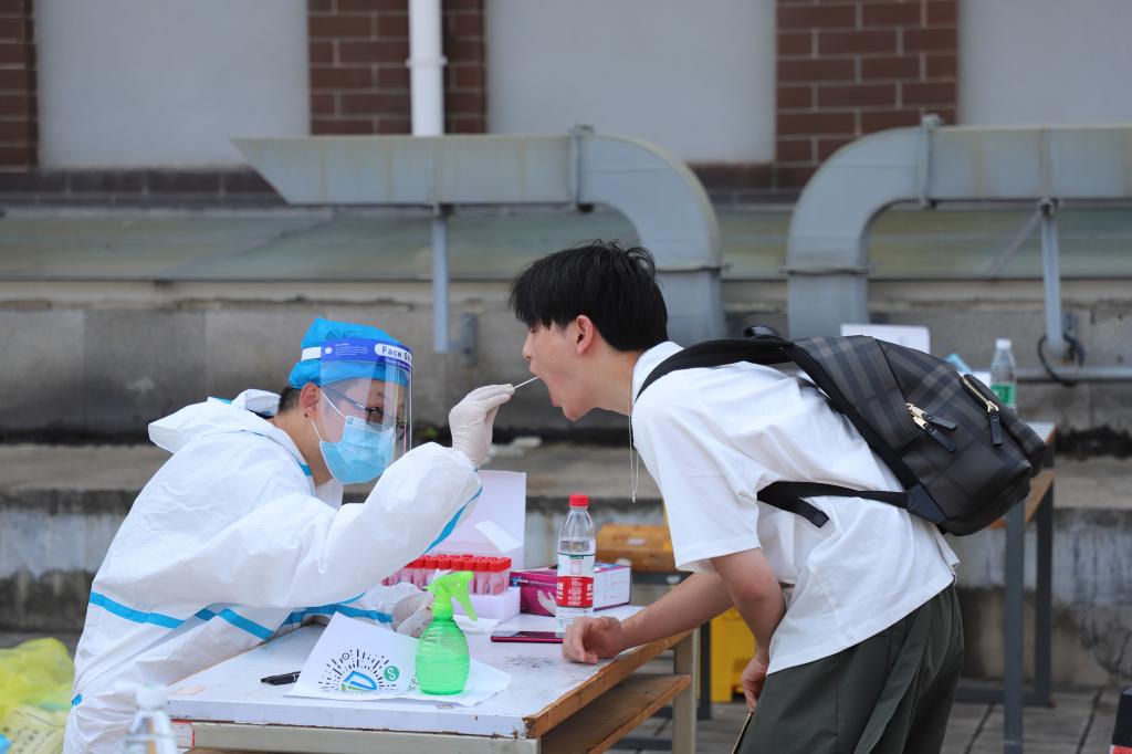 按照学校疫情防控和安全工作有关规定,2021级新生在老师和志愿者的引导下佩戴口罩进校,出示健康码、48小时内核酸检测证明,完成测温和消毒后,并在指定区域接受核酸检测。