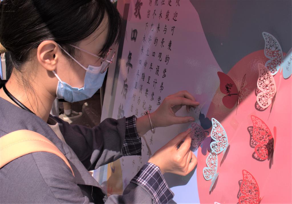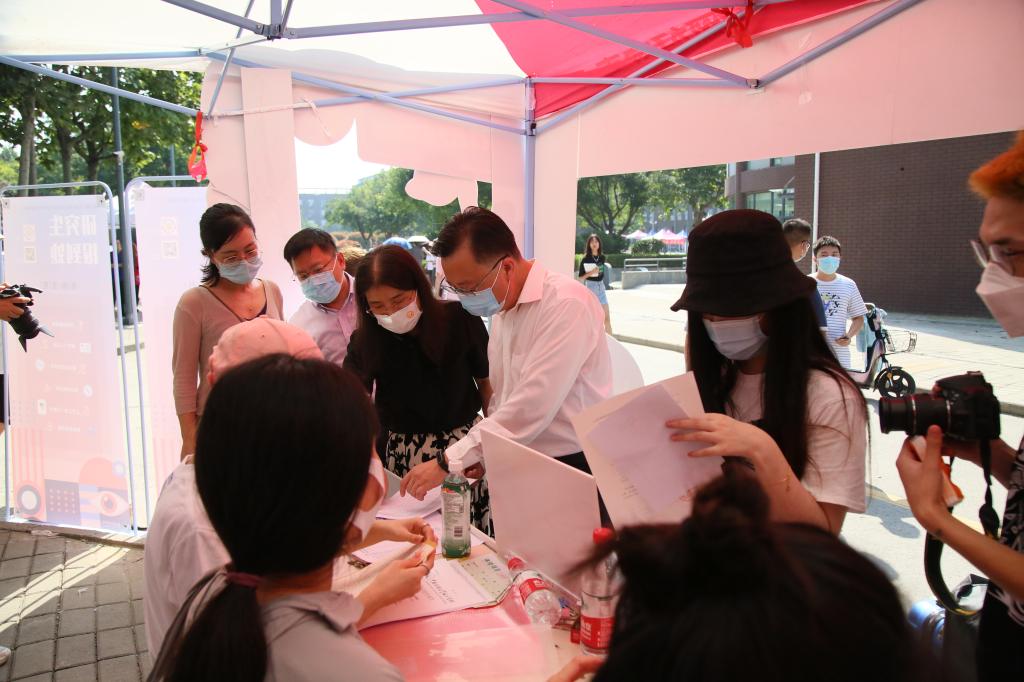 在各二级学院报到处,学校领导详细了解招生和新生报到情况,听取迎新情况汇报。大家都以最饱满、热情的状态迎接新同学的到来。视觉传达设计学院为欢迎2021级新生制作了以建党百年为主题的“强国有我”拍照墙和以手绘地图为背景的“共绘梦想”展示板,鼓励新生“为中华而读书,为人民而设计”,以奋进姿态迎接大学生活;建筑与景观设计学院为每位新生准备了带有新生姓名的3D蝴蝶贴纸,寓意着新生们在大学校园里汲取营养,展翅飞翔;工业设计学院则为新生准备了“新”语心愿许愿树和身着2021工业限定服装的人形立板合影留念;服装学院为新生准备了现代与国风结合的钥匙扣和服装定制发夹盲盒,将新生照片围成心形,保存每一份温暖与惊喜;造型艺术学院推出专属于2021级新生的迎新签到画板,一笔一墨的交汇是缘分的交错;现代手工艺术学院将170位新生照片拼成中国地图,将新生姓名拼凑成“2021”,希望2021级学子进入大学后怀抱梦想,扬帆起航;数字艺术与传媒学院由志愿者为每位新生拍摄大学第一张照片,供学生发给校外等候的家长,让家长不进校门也能“探校”;人文艺术学院在迎新点展示学院考研红榜,树立起新生的专业自信,提供军训注意事项等贴心服务;应用设计学院设计新颖的互动手绘签名墙、大型的入学通知书拍照墙、“欢迎新同学”校区漫游手绘地图,营造出浓郁的迎新艺术氛围;每一处用心的设计都展示着学长学姐们对于专业的追求以及对学弟学妹们到来的欢迎和未来发展的美好祝福。