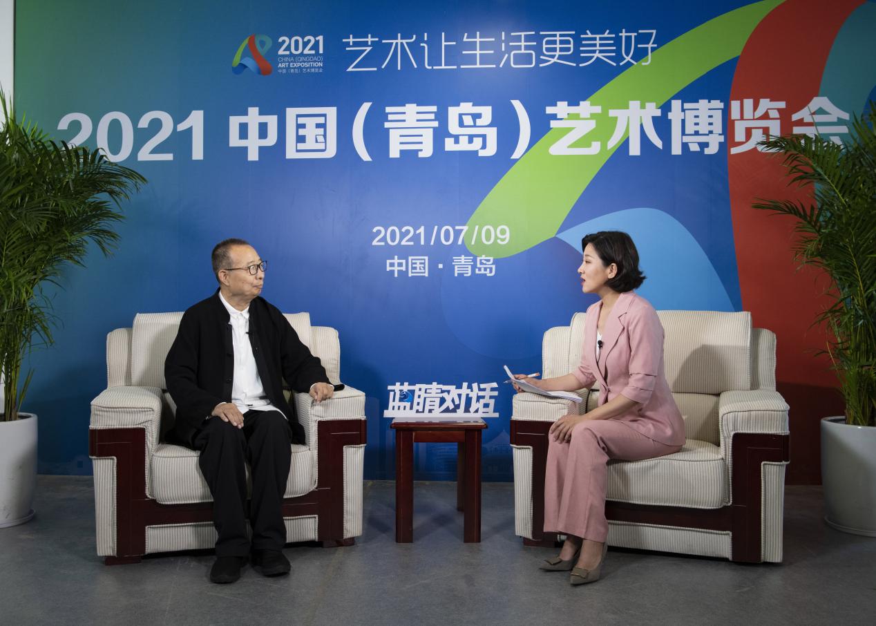 启动仪式前,潘鲁生就本届艺术博览会主题“艺术让生活更美好”、新时代美育开展、中华优秀传统文化创造性转化、创新性发展以及非物质文化遗产的传承保护、青岛文化建设发展等话题接受青岛电视台专访。
