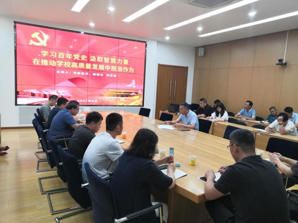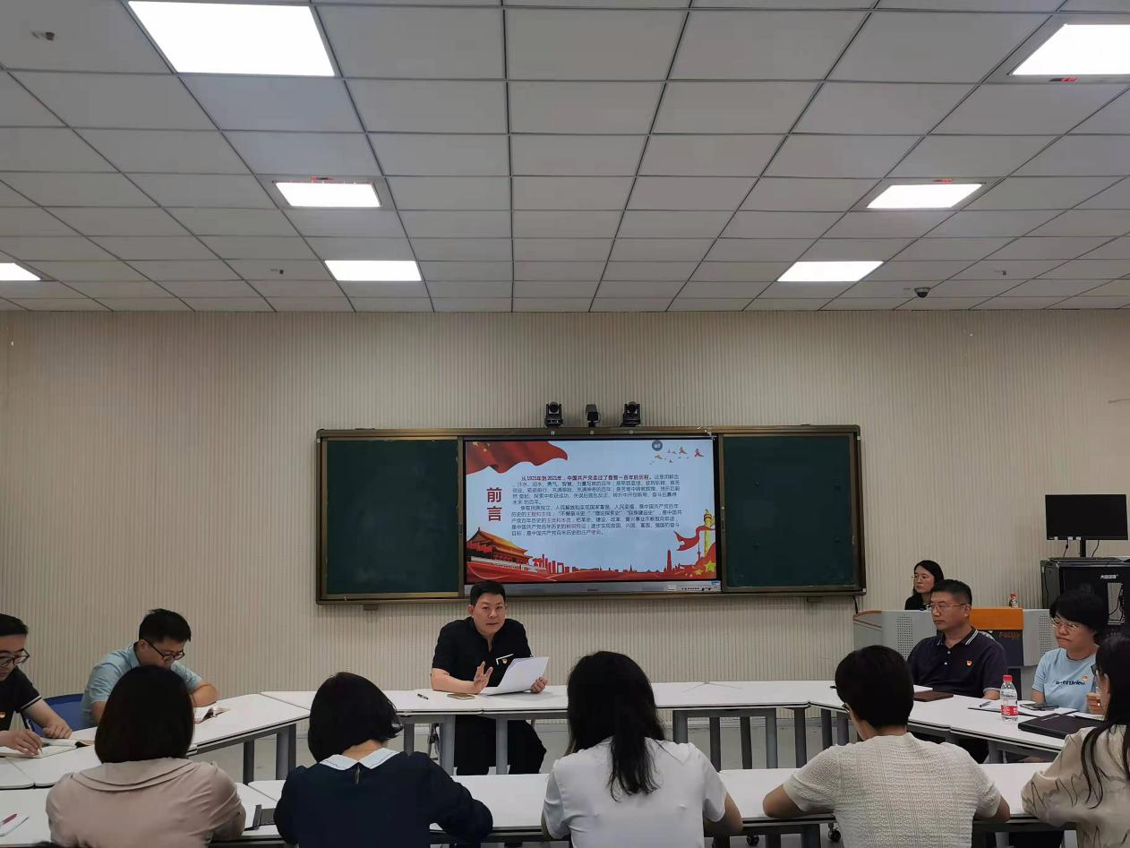 党委委员、宣传部部长韩文涛以《红色百年,历久弥新的必由之路》为题为思政部党总支、党委(院长)办公室党支部及宣传部党员干部讲授了党史学习教育专题党课。他循着习近平总书记考察调研的足迹,从人间正道是沧桑、艰难困苦向辉煌、为有牺牲多壮志、革命精神耀千秋等四个方面带领党员重温党史上的许多重大事件,“学党史、悟思想”,从百年的不懈奋斗史、思想探索史、自身建设史中领会百年大党的初心本色、理想信念和使命担当,领会红色百年、历久弥新的必由之路。