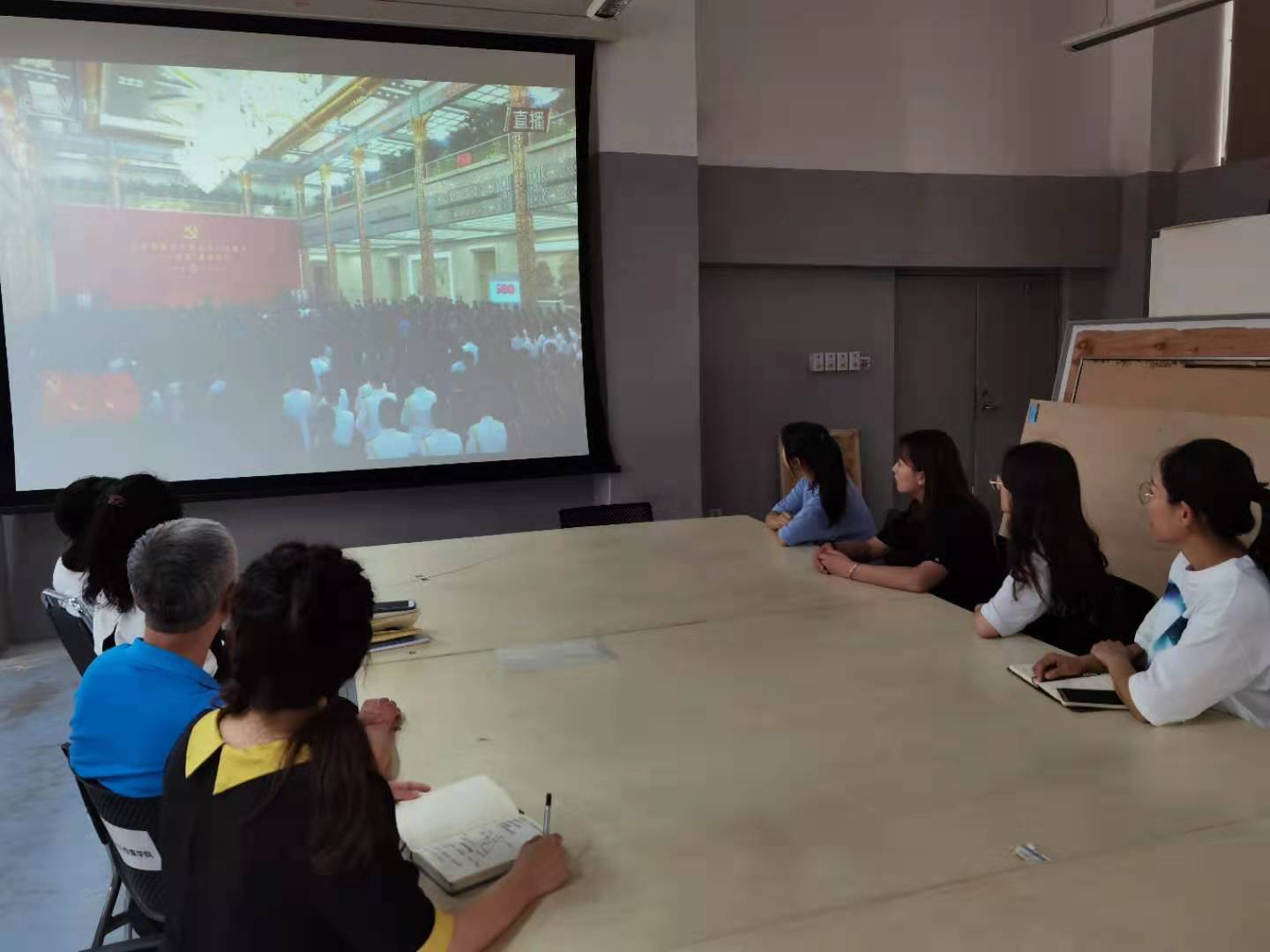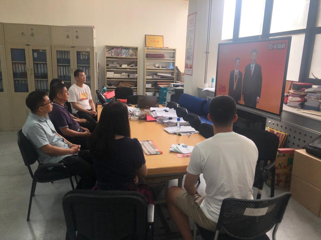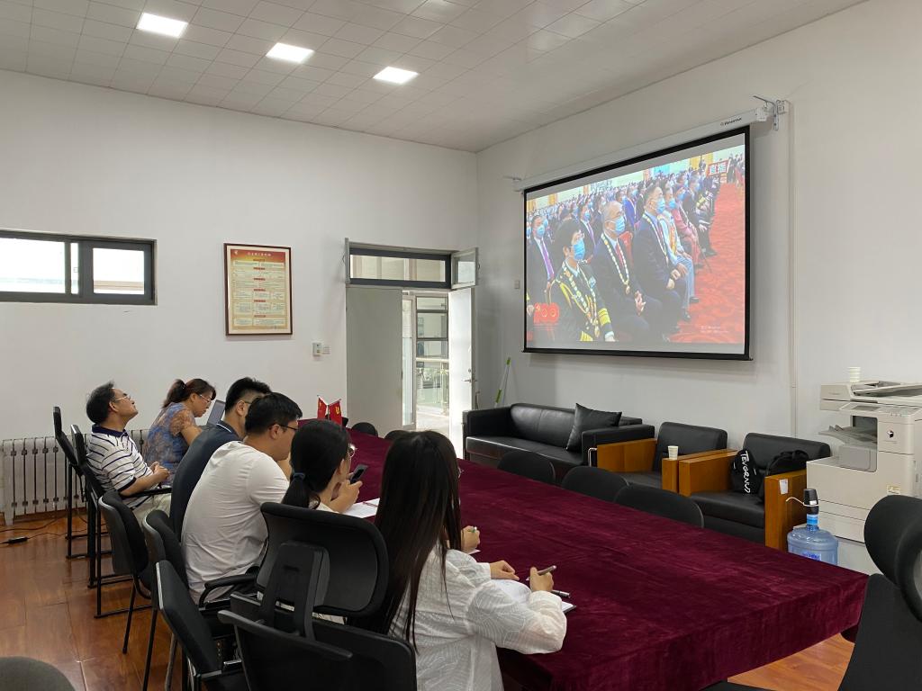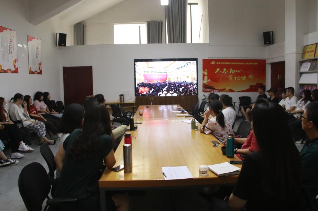 学校党委领导班子成员在长清校区党委会议室集中收看直播盛况。各党总支、党委直属支部分别组织党员师生集中观看。