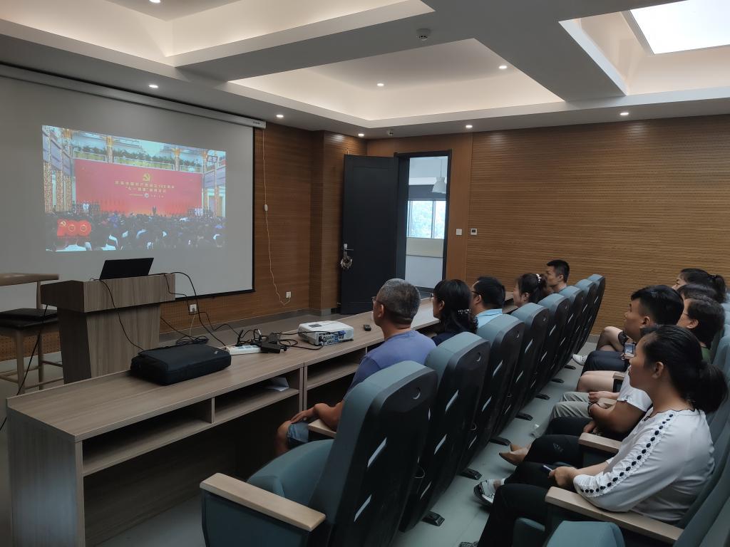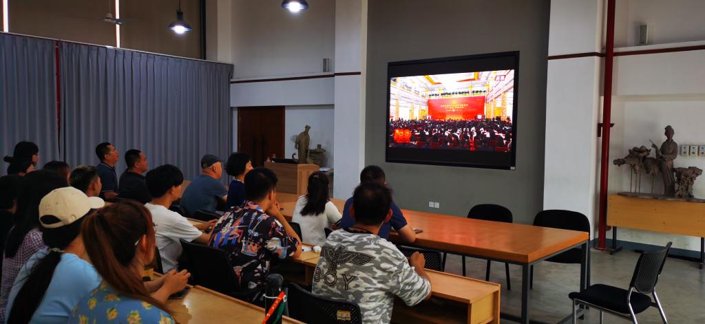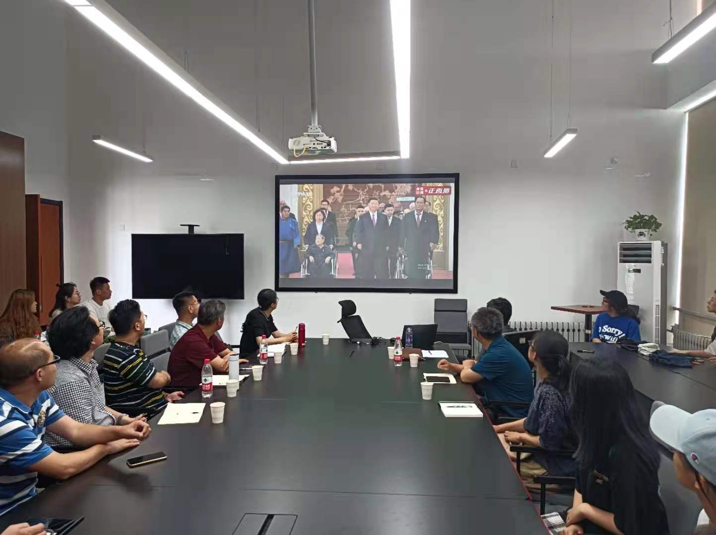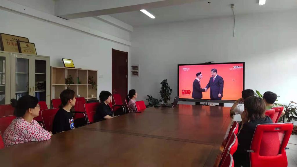 学校党委领导班子成员在长清校区党委会议室集中收看直播盛况。各党总支、党委直属支部分别组织党员师生集中观看。