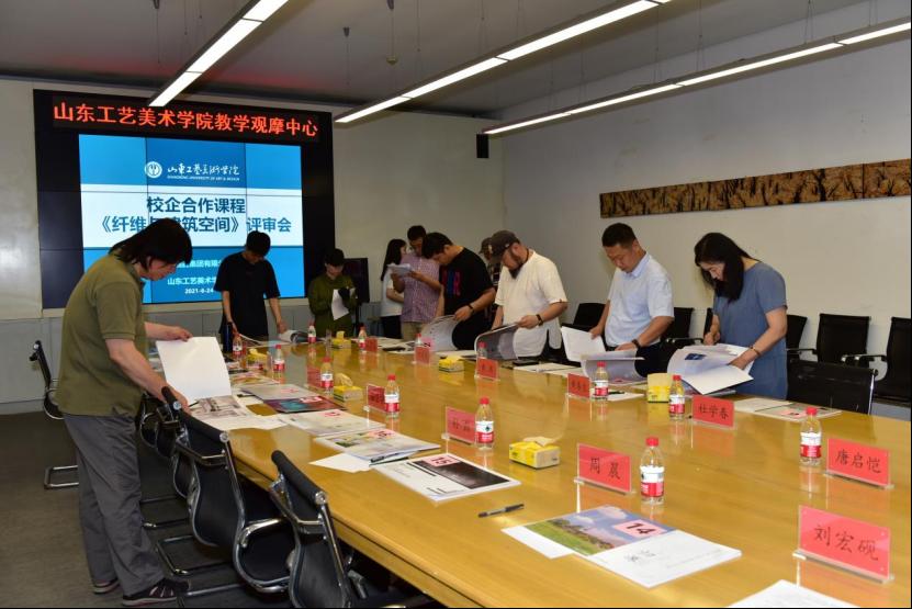 6月24日上午,由学校教务处组织建设的首批协同育人定制课堂《纤维与建筑空间》实践教学成果评审会在教务处会议室举行。党委副书记苗登宇,教务处处长孙磊,现代手工艺术学院副院长宋处岭,阳信瑞鑫集团有限公司董事长黄春生、总经理黄涛以及公司市场与设计部门人员,现代手工艺术学院课程项目负责人出席评审会。