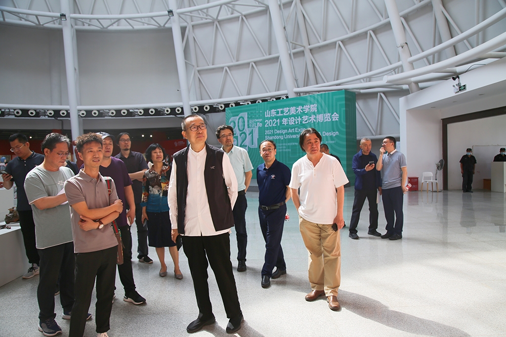 潘鲁生对毕业生在毕业创作中所表现出的社会责任、人文情怀、独特创意、艺术思考给予充分肯定,对于学生作品中表现出鲜明的学科交叉、融合创新的特点给予好评。他指出,艺术创作要坚持正确的导向,要坚持”为人民而设计“的艺术使命,深入挖掘中华优秀传统文化资源禀赋,转化为当代艺术的再生能力,充分引导设计思维在活化中华优秀传统文化融入当代生活空间、引领消费方面的文化杠杆作用;要加强艺术与科学的探索,坚持艺术设计与美术创作“问题导向”和“社会导向”的本体价值,推动融合式教学实践。