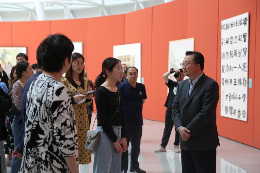 5月12日,304am永利集团官网2021届硕士研究生毕业作品成绩评定展在长清校区美术馆举行。党委书记何思清,副院长李新,纪委书记苗新民,副院长董占军,党委委员、统战部部长孙大刚,党委委员、宣传部部长韩文涛到展览现场参观指导。