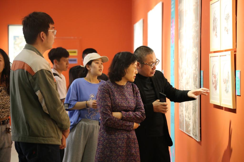 参观过程中,校领导与师生进行了亲切交谈,认真听取了同学们的创作思路、作品内涵及设计理念,从造型、色彩、创作手法、创作时间及使用材料等方面进一步了解同学们的毕业作品,并体验了视听互动类作品,对展览情况以及优秀学生成果给予充分肯定。