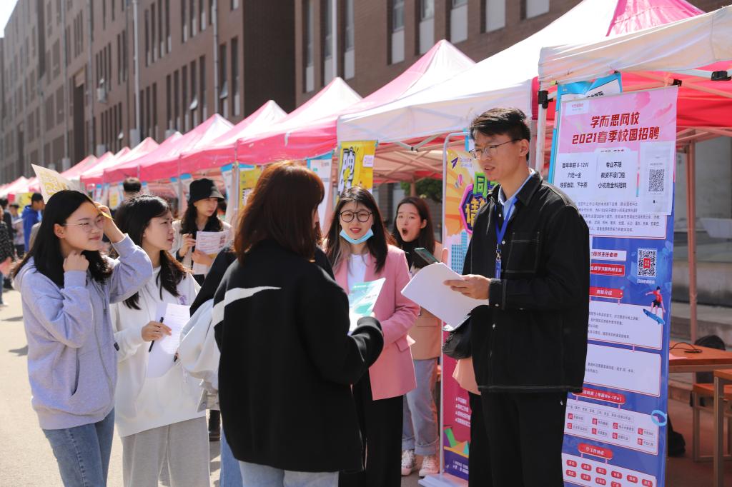 据了解,本次招聘会主要有四个特点:一是招聘岗位精确匹配专业。学校从2021届毕业生春季网络招聘会参会企业中遴选出与毕业生专业对口的100家用人单位参会,设置了“青鸟计划”招聘专区,专业对口率达100%,有效保障了招聘需求与专业的匹配度,为毕业生提供了精准的招聘岗位。二是教学单位精密对接企业。教学单位借助本次“就选山东”高校毕业生就业集中招聘活动平台积极推荐毕业生,通过现场调研、座谈交流等形式,与用人单位在学生实习、见习及毕业生就业等方面建立良性互动机制,做到信息畅通、资源共享。三是就业指导精准服务学生。学校始终以增强学生的综合素养和职业竞争力为目标,开设《职业生涯规划》和《就业指导》课程,帮助学生树立生涯规划意识,了解就业形势政策,掌握求职技巧并有针对性地做好就业心理辅导。招聘会前组织大学生简历制作大赛,并邀请校外专家举办“破‘简’而出‘职’为你来”简历制作专题讲座,在招聘会现场设立“应征入伍咨询处”、“青鸟计划咨询处”,为毕业生提供政策咨询和服务。四是活动组织精细联动部门。本次招聘会是学校深化党史学习教育,坚守为学生服务的初心,践行“我为群众办实事”活动的重要实践。在学校统一安排部署下,有关职能部门及教学单位通力合作,积极推进各项准备工作,确保了本次招聘会的顺利举行。