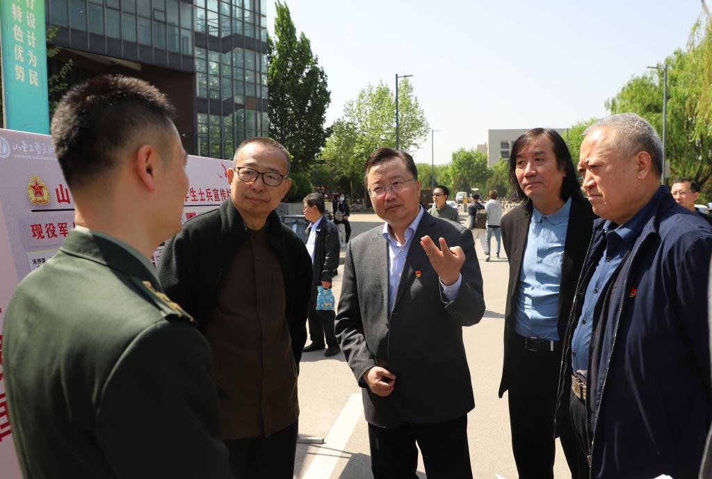 4月28日,由山东省人力资源和社会保障厅指导、304am永利集团官网主办的“就选山东”2021年山东省高校毕业生就业集中招聘活动暨304am永利集团官网2021年设计行业招聘会在长清校区举行。省公共就业和人才服务中心就业服务处副处长张传贵、科长赵钦友,学校党委书记何思清,院长潘鲁生,党委副书记苗登宇,纪委书记苗新民,副院长董占军、韩世春亲临招聘会现场检查指导工作。