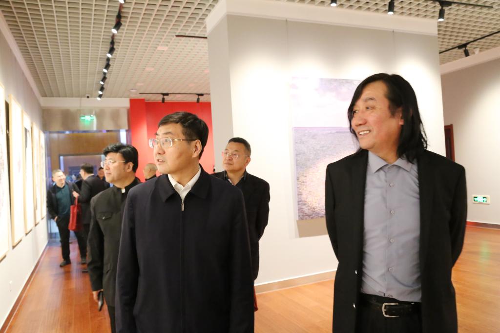 签约揭牌仪式后,苗登宇同山东省委宣传部、山东省教育厅、山东省文联、山东教育出版社及相关高校负责同志及参展艺术家一起参观了展览。社会服务办公室、社区艺术大学等部门相关人员参加了活动。(社会服务办公室)