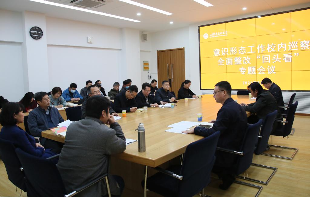 韩文涛结合首轮意识形态工作校内巡察整改落实情况,分别从规范理论中心组学习、加强宣传阵地管控、严格落实“一会一报”制度、强化档案痕迹管理、及时提交专题报告等五个方面,就做好“回头看”工作进行重点部署。