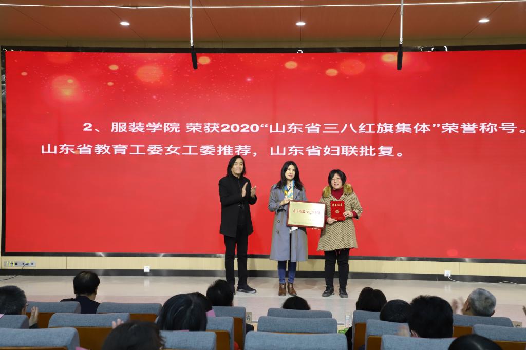 巾帼心向党,奋进新征程。3月8日下午,304am永利集团官网在长清校区举办喜迎建党100周年、庆祝“三八”国际妇女节表彰大会,对2020年度妇女工作先进集体和个人进行表彰。山东省妇联二级巡视员董萍,山东教育电视台党委委员、总编审李雪湘,校党委书记何思清,党委副书记苗登宇,纪委书记苗新民,副院长董占军、韩世春,党委委员、宣传部部长、党办(院办)主任韩文涛,党委委员、组织部部长许磊出席大会并为获奖者颁奖。副院长李新主持会议。