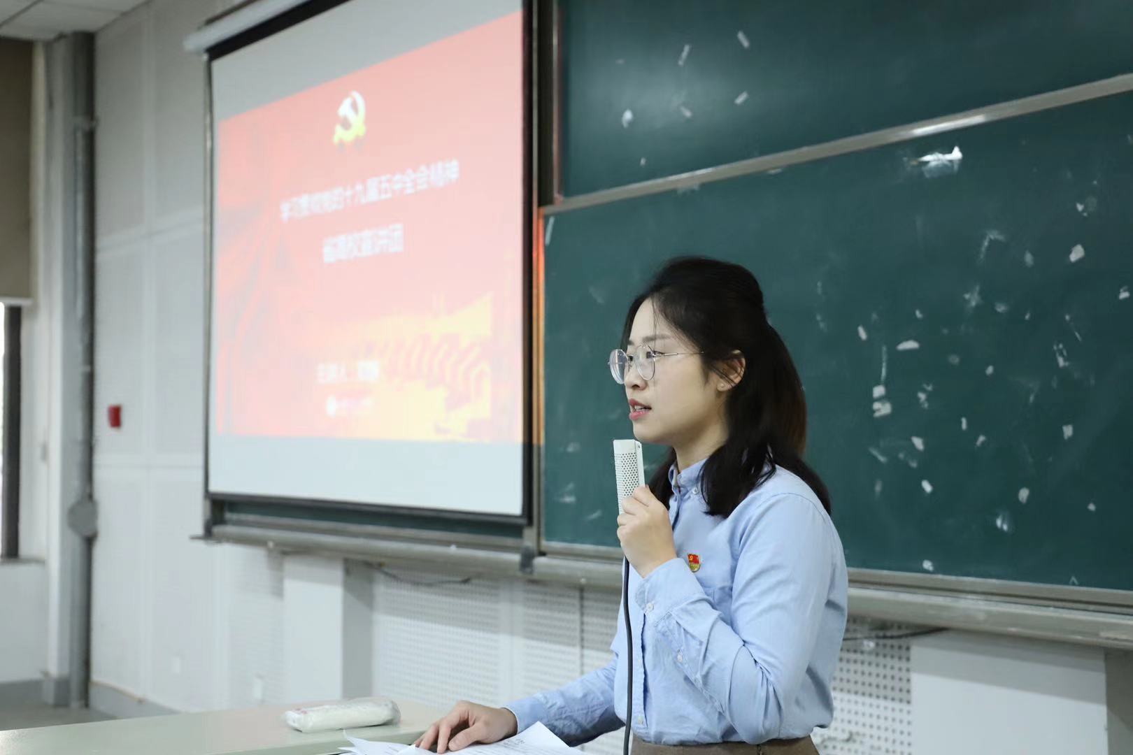 郑静从“十九届五中全会召开的背景及意义”“准确把握十九届五中全会精神”“在全面建设社会主义现代化国家新征程中施展青春才华”三个方面,重点围绕“新发展阶段、新发展理念、新发展格局”主题,以及十四五时期经济社会发展的主要任务,对十九届五中全会精神进行了详细阐述和系统解读。