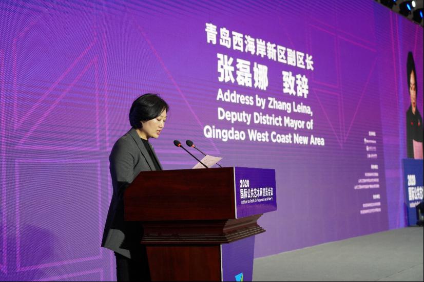 张磊娜致辞,希望通过这次活动,每位参与者都能拓宽新视野、迸发新灵感、创造新精品,帮助西海岸新区依据当地文化特征特质,合理布局公共艺术,有力诠释传统文化和现代文明,引领西海岸新区的公共艺术走在全国乃至世界前列,并让更多人更好地认识西海岸新区、发现西海岸新区、助力西海岸新区,吸引更多国内外艺术设计团队、人才和企业到西海岸新区落地生根、开花结果,携手共筑城市公共艺术新高地。