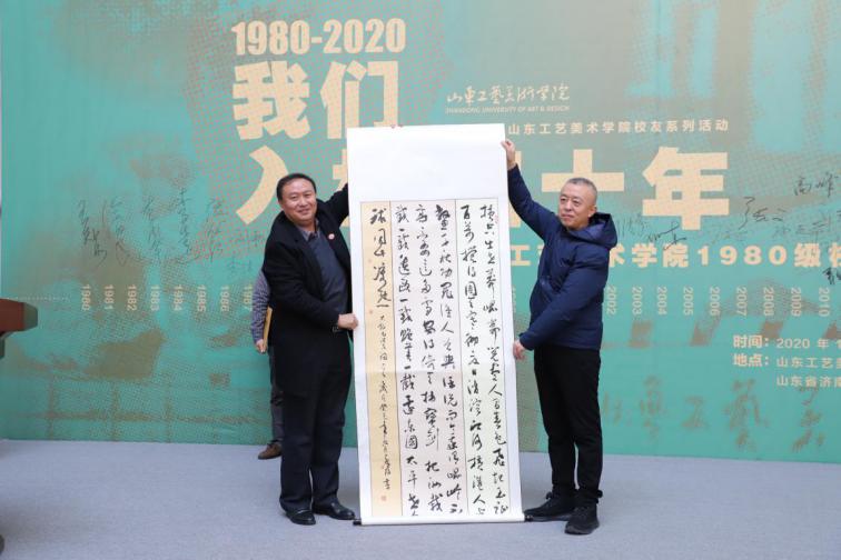 何思清致辞。他代表母校向各位校友的到来表示热烈的欢迎,向长期关注、关心、支持母校建设与发展的各位校友表示诚挚的感谢。何思清回顾了学校四十年间发生的巨大变化,介绍了学校取得的发展成果。近年来,学校紧密围绕国家、山东省及产业发展需求,坚持“以特色求发展”的办学理念,坚持立德树人,以“为人民而设计”为使命,践行社会主义核心价值观,为社会培养了数万名具有“科学精神、人文素养、艺术创新、实践能力”的创新型应用设计人才,切实担负起人才培养、科学研究、社会服务、文化传承的大学使命。