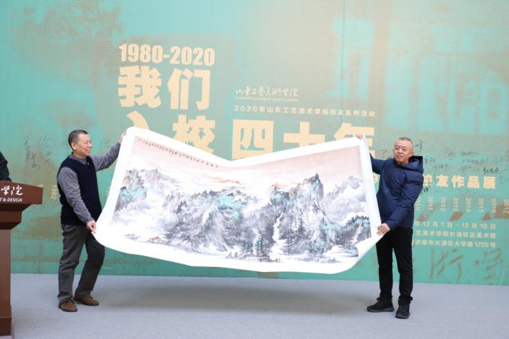 开幕式上还进行校友捐赠仪式。校友郭立民、郭广阳先后向母校捐赠了国画作品和书法作品,美术馆馆长李文华代表学校接受捐赠,并向校友颁发了收藏证书。