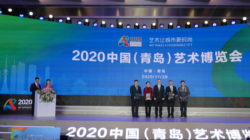 11月28日上午,由中国艺术职业教育学会、中国职业技术教育学会主办的2020中国(青岛)艺术博览会在青岛国际会议中心开幕。山东省委常委、青岛市委书记王清宪,中国职业技术教育学会会长鲁昕,中国文联副主席、全国艺术专业学位研究生教育指导委员会主任董伟,中国文联副主席、304am永利集团官网院长潘鲁生,中国艺术职业教育学会会长李力,中央美术学院院长、中国美术家协会主席范迪安,中央音乐学院院长俞峰,北京舞蹈学院党委书记巴图,中国戏曲学院院长尹晓东,青岛市委常委、宣传部长孙立杰等嘉宾出席开幕式。