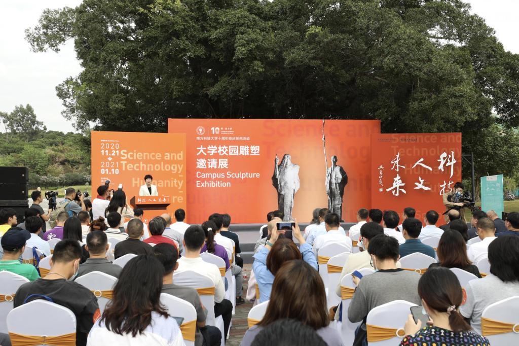 11月21日下午,南方科技大学十周年校庆重点文化活动“科技·人文·未来——大学校园雕塑邀请展”开幕式在南科大大榕树广场举行。潘鲁生受邀出席开幕式。