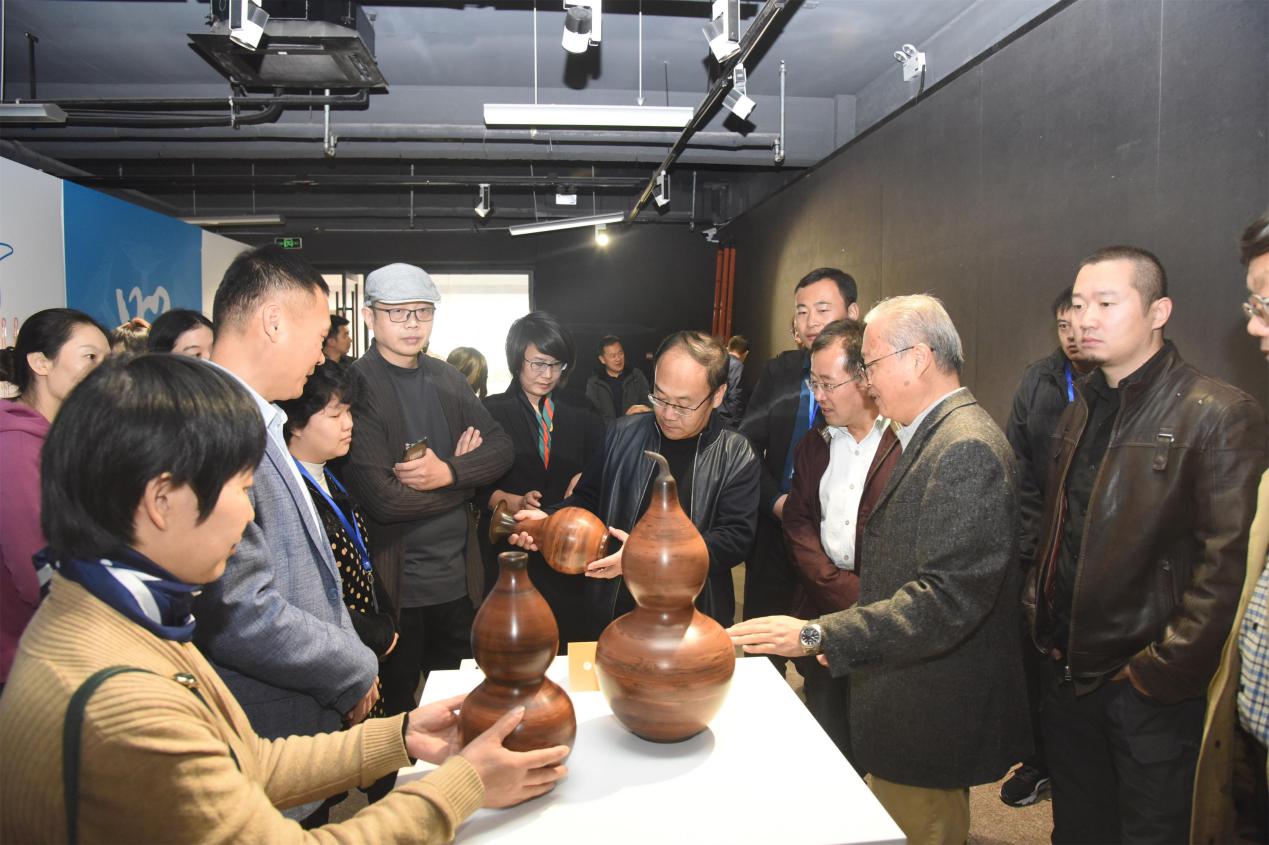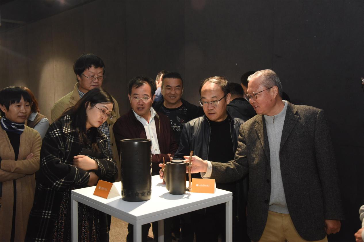 结业仪式结束后,与会领导参观了“器象万千——陶瓷(黑陶)技艺及拓展应用研修班”教学成果汇报展。学员们热情地向大家介绍自己的作品创作过程、创作工艺及作品特色。领导们对学员的优秀作品以及衍生品开发设计表示肯定,并提出技艺要传承、内容要创新,要关注现代人的审美,做一些贴近生活、符合市场需求的产品;并且要积极开拓销售渠道,不断提高非遗产品的市场竞争力,促进当地经济发展。