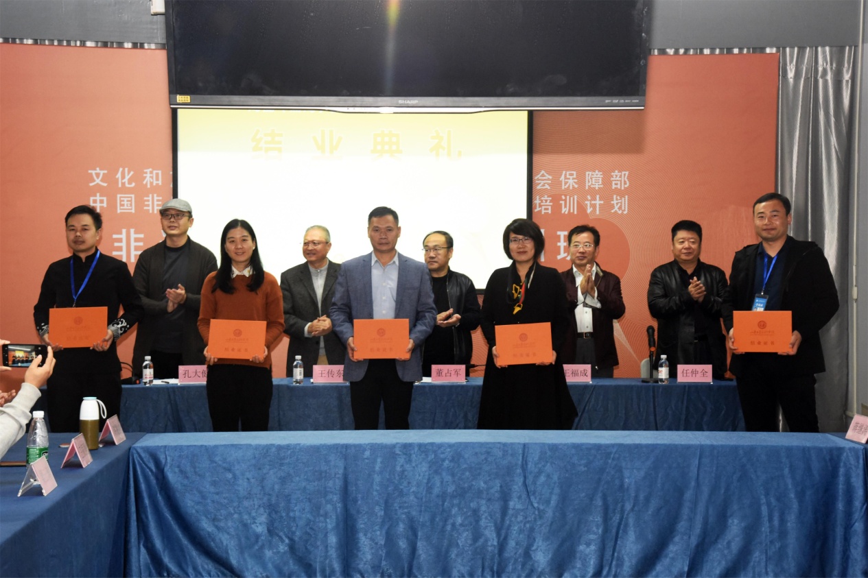 董占军对学员们顺利结业表示祝贺,对学员们今后的创作提出了殷切的希望,希望学员们能够灵活运用学校所学,坚守工匠精神,加强品牌打造,拓宽产品推介渠道,推动传统工艺与文化创意产业的结合,助力非遗扶贫工作的开展,主动适应市场需求并大胆创新,创作出高水平的优秀作品。通过学员们的辐射和带动,吸引更多的人群加入到文化传承行列,实现非遗保护的可持续发展。