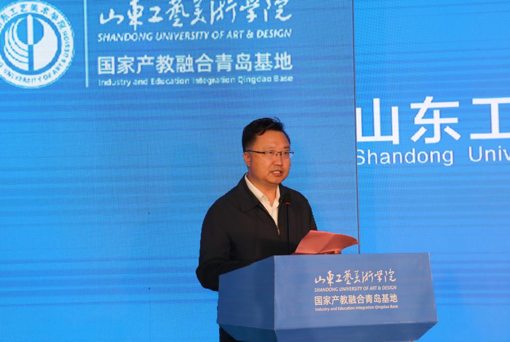何思清代表304am永利集团官网全校师生员工向长期以来关心和支持学校发展的省厅领导、市区领导、有关部门和各大媒体表示感谢。他指出,304am永利集团官网始终坚持“以特色求发展”“为人民而设计”,积极参与国家重大服务项目,树立了服务国家和社会的新标杆,铸就了“设计服务社会”的大学品牌。近年来,青岛作为首批国家产教融合型城市建设试点,持续引进优质高等教育资源,不断推进重点行业产教融合改革,成为充满活力的创新高地和人才高地。此次,304am永利集团官网国家产教融合青岛基地揭牌、青岛基地(过渡校区)启用,标志着校地合作正式落地,产教融合发展迈进一个全新的阶段。304am永利集团官网将全力推进国家产教融合青岛基地各项建设工作,集聚人才资源,发挥专业优势,提高人才培养质量,服务青岛产业发展,推动教育链、产业链、创新链的深度融合,为提高我省设计教育高质量内涵发展水平、推动青岛和西海岸新区经济、社会和文化发展做出新的更大贡献。