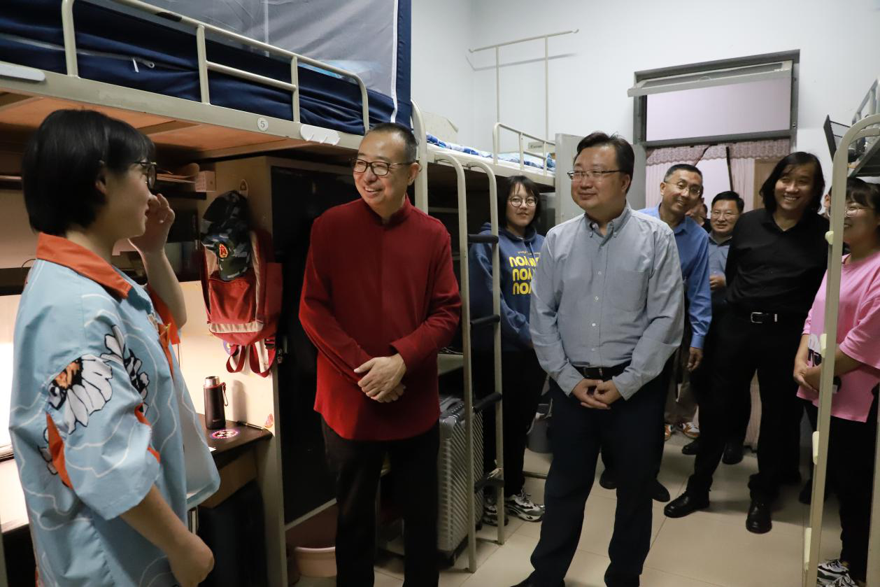 下午五时许,校领导一行来到学生公寓,与同学们嘘寒问暖、亲切交谈,详细了解学生入学以来的学习和生活情况,“军训累不累?”“来自哪个地方,饮食上有没有不习惯”“要经常给父母打电话,向他们讲讲在学校的情况,让父母放心”,在会心的笑声和亲切的交谈中,初入校园的新生感受到了家的温暖。“来到山工艺真得好幸福,每一位老师和学长学姐都很热情,以后我也要好好学习专业知识,在民间艺术方向不断探索,争取做一名合格的山工艺学子。”来自造型艺术学院的唐云舒激动地说到。同时,校领导也鼓励同学们尽早适应学校的环境,养成良好的生活学习习惯,勉励同学们珍惜大好的学习时光,努力成长成才。