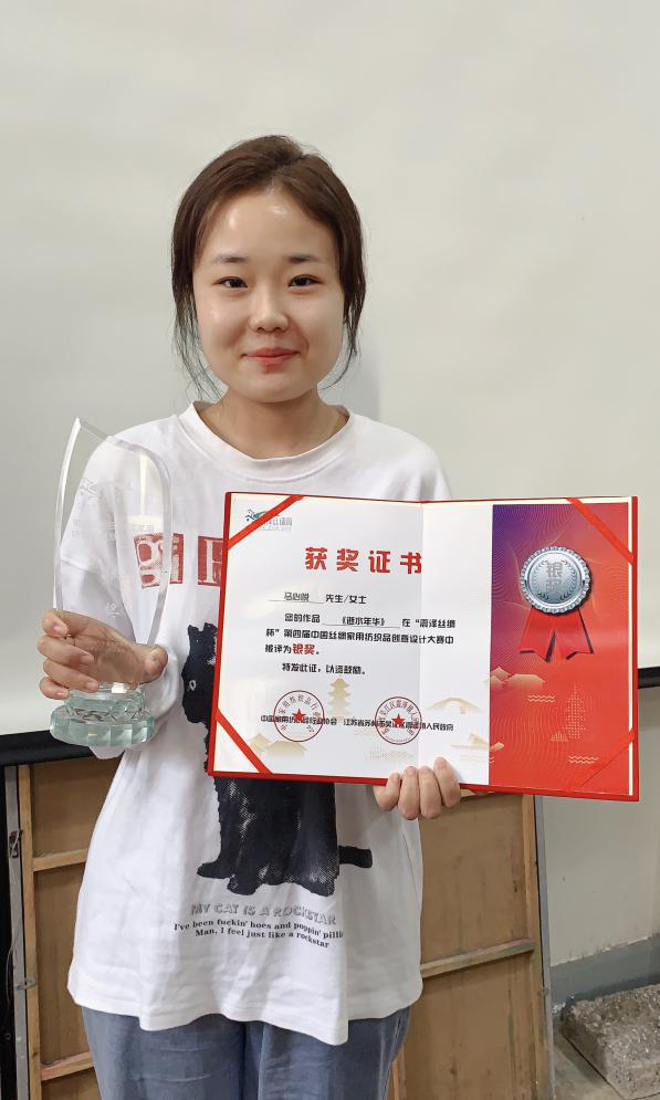 在现代手工艺术学院毛正老师的指导下,2017级纤维染织专业学生马心悦同学喜获银奖1项、于然云同学喜获优秀奖1项,以及入围奖一项。毛正老师获得“优秀指导教师”称号。(304am永利集团官网现代手工艺术学院)