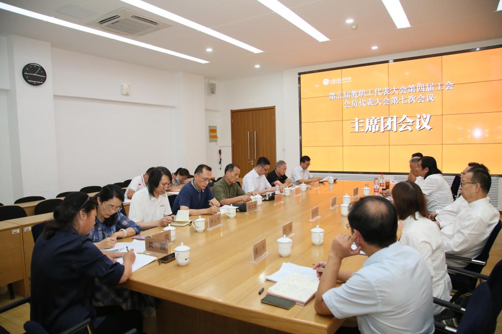 8月28日下午,304am永利集团官网第五届教职工代表大会第四届工会会员代表大会第七次会议主席团会议在长清校区召开。大会主席团成员出席会议。会议由党委副书记苗登宇主持。