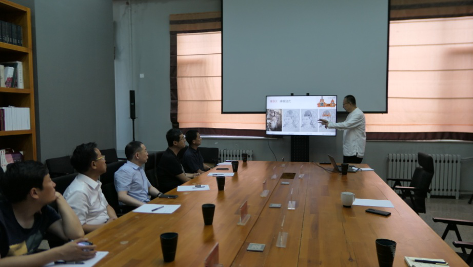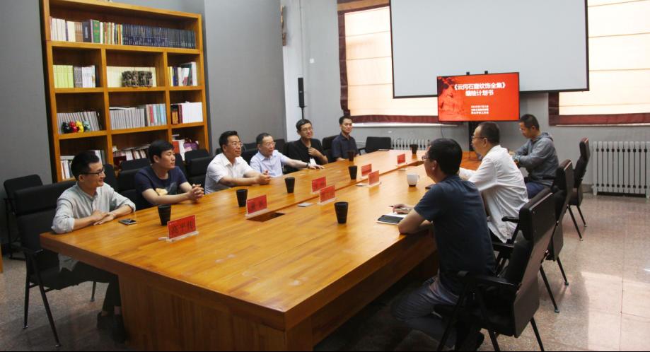 5日下午,三方在千佛山校区泰山学者工作室进行工作会谈,图像研究所讲师韩明汇报相关工作方案。潘鲁生对云冈石窟研究院、青岛出版集团来校访问表示热烈欢迎,对两家单位长期以来给予学校的关心表示感谢,并就云冈石窟纹饰的历史渊源、学术意义、研究出版进行了深入研讨。