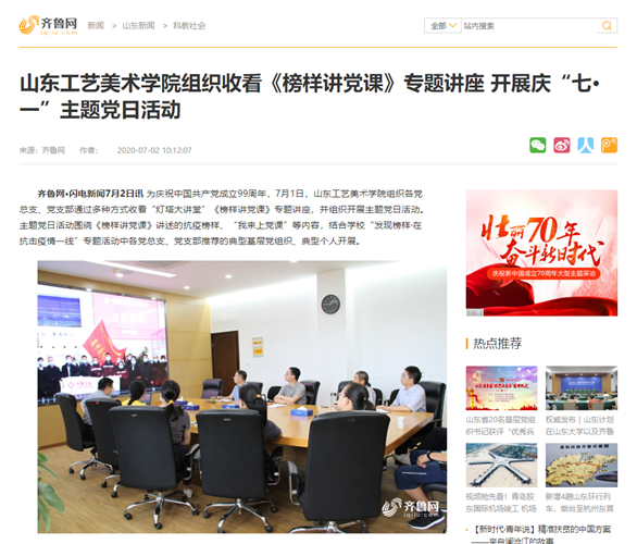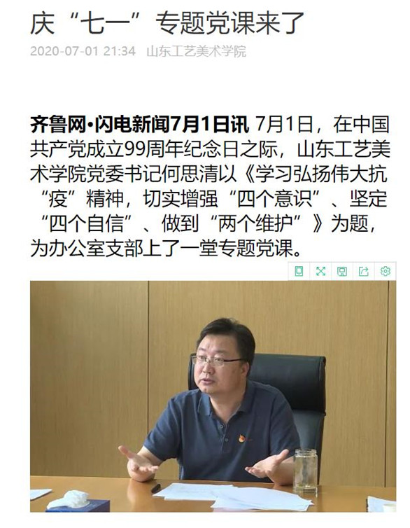 7月1日,为庆祝中国共产党成立99周年,304am永利集团官网组织开展“七·一”主题党日活动。“灯塔—党建在线”网络平台、齐鲁网·闪电新闻等媒体平台对活动给予关注,并第一时间进行报道。