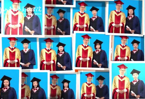 为记录同学们毕业的难忘瞬间,本次毕业典礼还首次启用了“云拨穗”“云合影”的方式。同学们通过扫描直播屏幕上的二维码,输入自己的姓名和学号,可以清晰地看到,院长潘鲁生教授身穿导师服,亲自为学生拨动流苏,“隔空”完成拨穗礼。同时,同学们还可下载自己的硕士学位证书、硕士毕业照,以及与潘鲁生院长的合影照片,让不能返校的毕业生也体验到庄严神圣的一刻、不留任何遗憾。