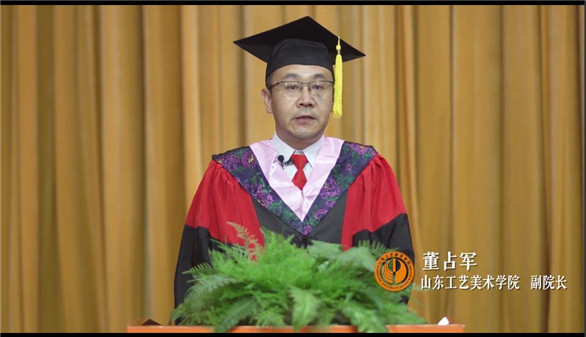 董占军祝贺2020届硕士研究生圆满完成学业,开启新的人生旅程。他指出,过去的五个月里,广大研究生同学静心读书、专心研究,积极参与“生命重于泰山”主题创作,顺利完成毕业设计和学位论文答辩,圆满完成了学业。希望同学们牢记母校嘱托,秉承“天工开物,匠心独运”的校训精神,勇担时代使命,传承优秀传统文化,坚持以艺术服务社会、用设计服务生活。希望同学们坚定理想信念,锤炼意志品格,坚持治学研究,保持独立思考,勇于接受挑战,在艰苦奋斗中砥砺前行,在创新创业中增长才干,为国家和人民做出积极的贡献。