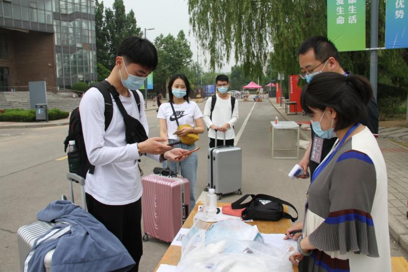 报到现场,学生亮出健康码,接受体温测量和核验身份,领取学校配发的健康礼包,省外返校学生接受核酸和血清抗体检测后入住宿舍,完成报到流程。各项工作有条不紊地按照既定工作方案顺利进行,秩序井然。