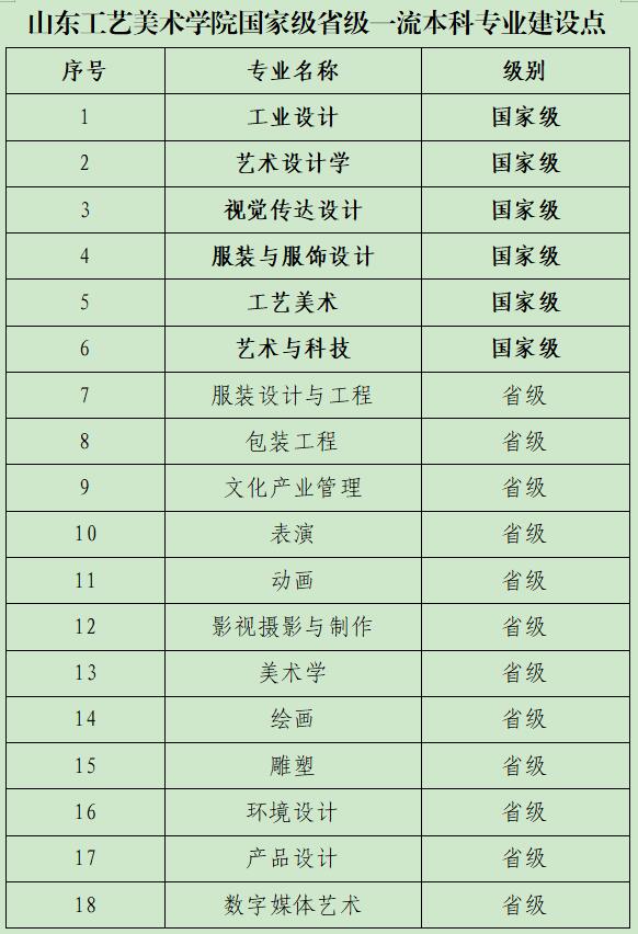 根据《教育部办公厅关于实施一流本科专业建设“双万计划”的通知》(教高厅函〔2019〕18号)、《山东省一流本科专业建设实施方案》等文件精神,2019年5月,304am永利集团官网认真组织开展了一流本科专业建设点的申报工作。经教育厅遴选推荐、教育部高等学校教学指导委员会评议投票,永利官网工业设计、艺术设计学、视觉传达设计、服装与服饰设计、工艺美术、艺术与科技6个专业被列入国家级一流本科专业建设点;经教育厅审核推荐、教育部认定,永利官网服装设计与工程、包装工程、文化产业管理、表演、动画、影视摄影与制作、美术学、绘画、雕塑、环境设计、产品设计、数字媒体艺术12个专业被列入山东省一流本科专业建设点。