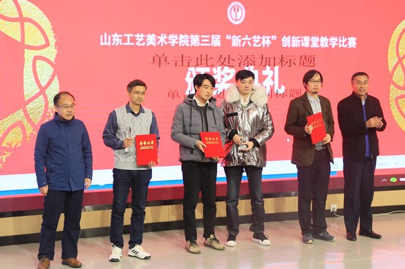 颁奖典礼随后举行,综合教学文件评审、课堂过程教学视频评审和现场说课三个环节的成绩,最终服装学院邹渊、高瑞彤、刘江南团队的《时装定制设计》课程获得一等奖;数字艺术与传媒学院邢艳群、宋鲁、李广福团队的《抠像艺术》课程,服装学院张奕、李杰、林晓杰团队的《形象设计》课程获得二等奖;造型艺术学院曹淑海老师的《浮雕基础》课程,数字艺术与传媒学院田金良、张牧团队的《影像装置设计》课程,工业设计学院曹培峰、王君秋、李璐团队的《公共设施系统设计》课程获得三等奖。