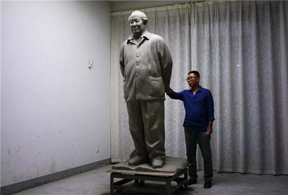 图11-图12 《共和国工艺美术教育事业的奠基者·庞薰琹》在工作室泥塑创作过程