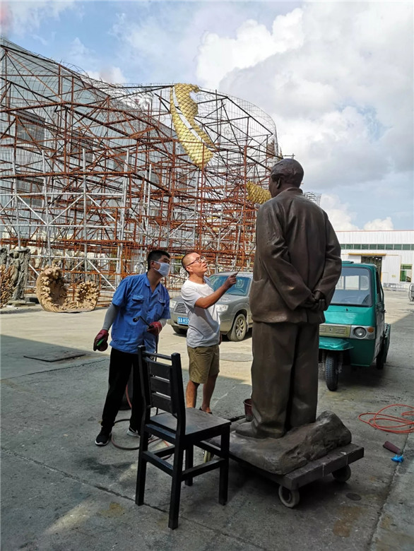 图19-图21 《共和国工艺美术教育事业的奠基者·庞薰琹》翻制、铸造、上色过程