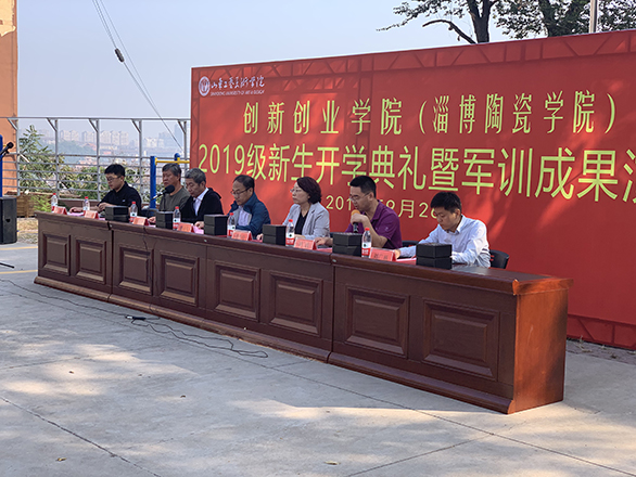 9月26日上午,阳光和煦,秋风习习。创新创业学院(淄博陶瓷学院)2019级新生军训暨军训成果演示在博山校区体育场举行。副院长董占军出席并讲话。博山区委宣传部副部长闫秀珍应邀参加活动。